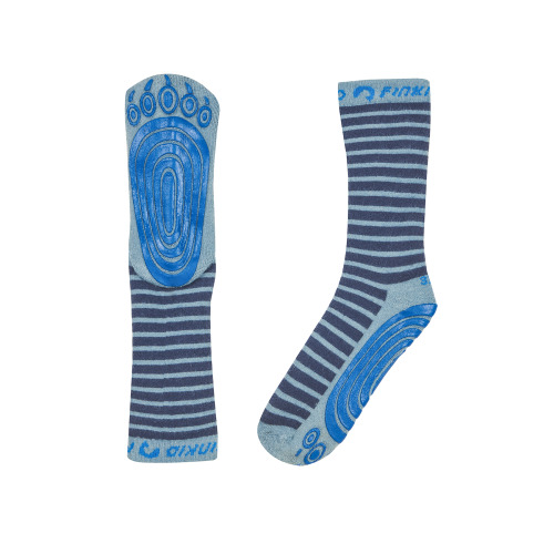 Da steppt der Bär! Diese Grip Sox mit Tatzenprofil verkürzen den Bremsweg der Kleinen. Die warme angenehme Baumwollmischung ist innen weich frottiert, formstabil und pflegeleicht. Praktischerweise ist die Größenbezeichnung eingestrickt. Die Profilgummierung macht die Sohlen luftdurchlässig. Bremst das Tempo, aber nicht den Spaß! Material