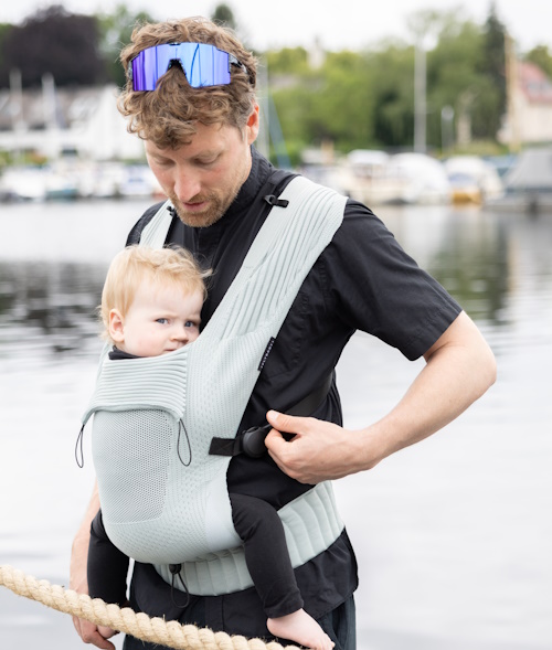 Ein flexibles Strickpanel hält dein Baby in der empfohlenen M-Position.