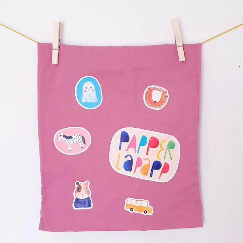 Kunterbunte Bügelbilder mit großen Schriftzügen „Rambazamba“ und „Papperlapapp“ im DIN A5 Format