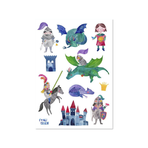 Frau Ottilie spülmaschinenfeste Sticker *Ritter & Drachen*