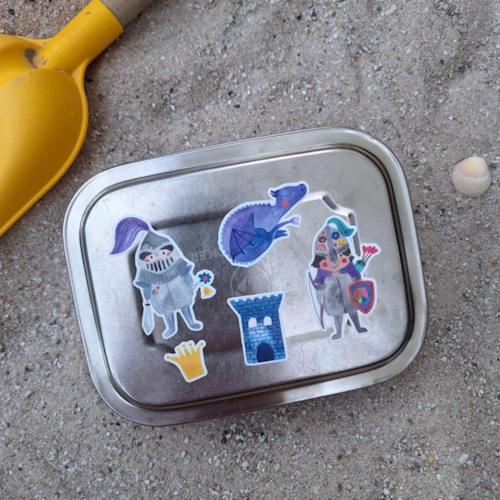 Die wasser- und spülmaschinenfesten Aufkleber *Ritter & Drachen* Für alle Ritter und Drachenfans. Die freundlichen Ritter und liebenswürdigen Drachen erfreuen alle großen und kleinen Ritterfans. Ob auf euren Brotdosen, Trinkflaschen, Fahrradhelmen, dem Roller oder Lastenrad – Die Sticker von Frau Ottilie verschönern eure Alltagsgegenstände und machen sie einzigartig und besonders. Qualität: die Sticker sind spülmaschinenfest I UV-beständig I kratzfest I extra stark haftend I in Deutschland produziert