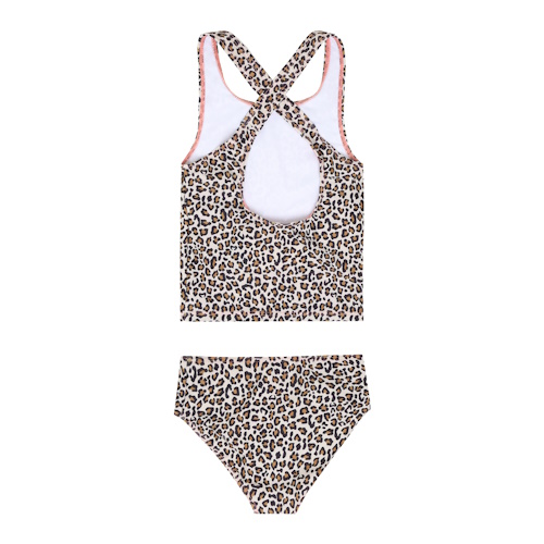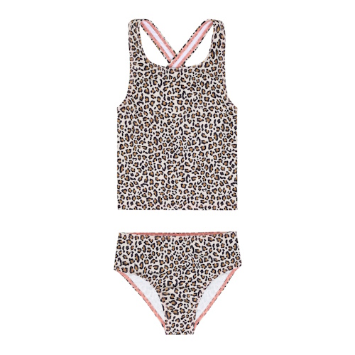 Bade Zweiteiler mit Leo Print und pinen Kontrastnähten