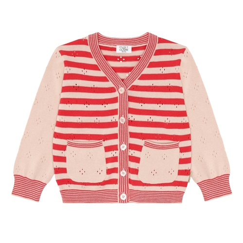 Hust & Claire Bauwollstrickjacke mit Streifendesign und spannendem Lochmuster.