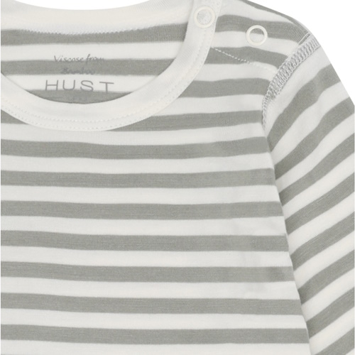 Langärmliges Babybody der dänischen Marke Hust&Claire. Der Halsabschluss dieses Modells ist mit einer Knopfleiste auf der linken Schulter.