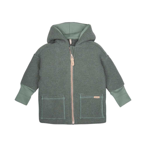 Kapuzenjacke aus Walk in 80% Bio-Schurwolle und 20% Bio-Baumwolle, gefütterte Kapuze, Bündchen und Belege aus Jersey in Bio-Baumwolle. Das dicht verarbeitete Material sorgt dafür, dass die Kleinen auch bei Feuchtigkeit wohlig warmgehalten werden. Die angeschnittene Kapuze schützt im Nacken vor Zugluft. Der Schnitt bietet genügend Bewegungsfreiheit und die extra lange Bündchen an den Ärmeln ermöglichen ein Mitwachsen. Ein Kunststoffreißverschluss ermöglicht ein leichtes Öffnen und Schließen der Jacke, am oberen Ende ist er mit einer Reißverschluss-Garage versehen, damit nichts zwickt. Aufgesetzte Taschen in einer dekorativen Teilungsnaht und der Zipper mit Pure-Pure-Branding runden das Design ab.